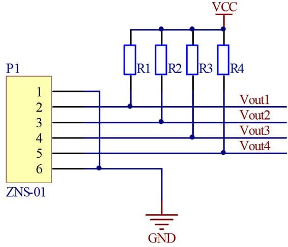 The brilliance of this circuit lies in its ability to consolidate multiple points by utilizing common terminals. Each sensor boasts 4 signal output ports, with pins #1 and #6 serving as shared terminals, facilitating efficient data transmission.