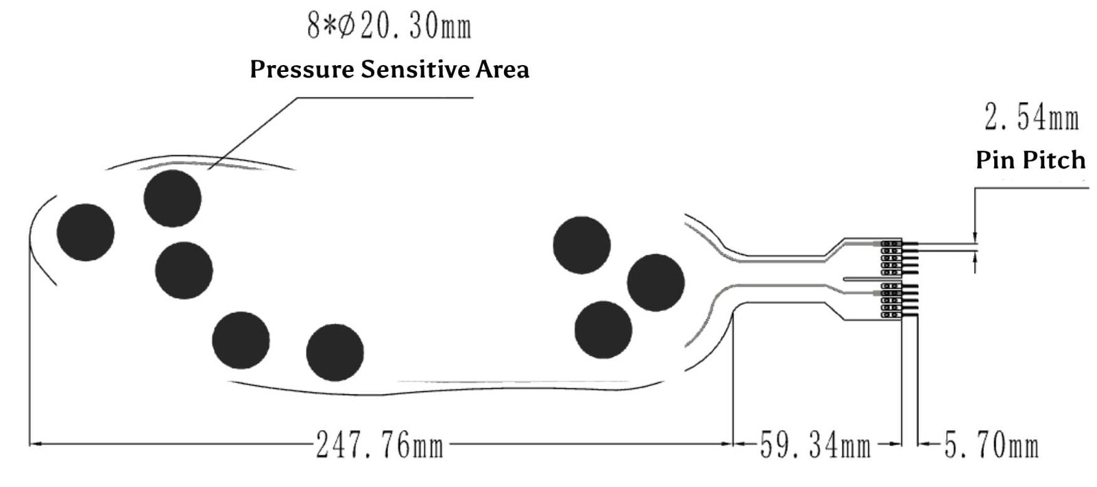 - When using the sensor on rigid and hard surfaces where the contact area exceeds the sensitive area, it may result in a small and unstable pressure response. To mitigate this, we recommend attaching a round soft rubber pad to the center of the sensitive area. The pad should have a diameter slightly smaller than the sensitive area, and its surface area should be at least 60% of the sensitive area. This ensures optimal performance and stability during pressure measurements.